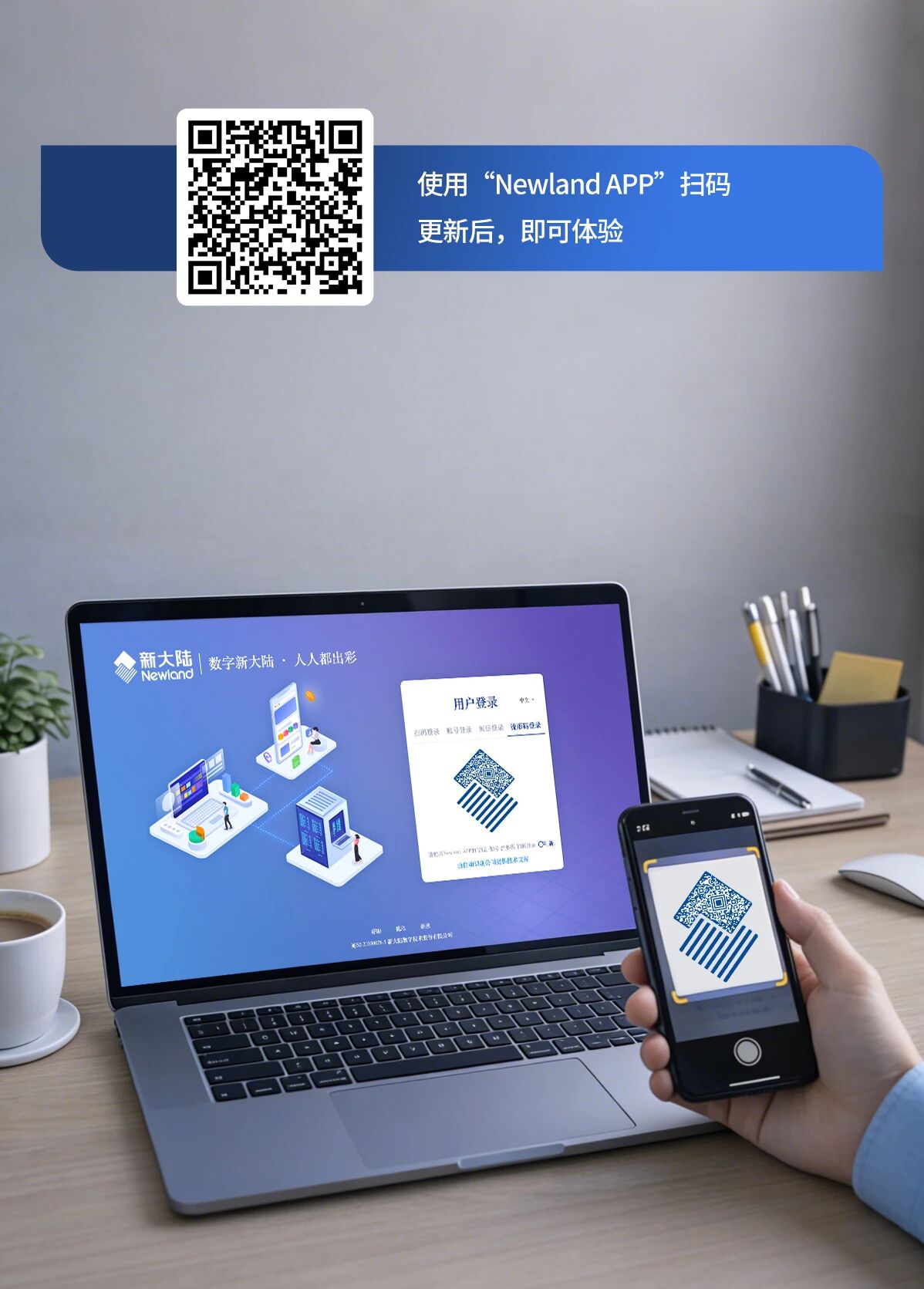 目前,新大陆自动识别公司自研码制“流形码”已在集团OA登陆页面上线,通过与新大陆企业Logo巧妙融合,一次特别的“码”上体验,正在上演。新大陆集团小伙伴们现在即可用Newland APP扫描下方图片二维码,更新APP后,参与体验。