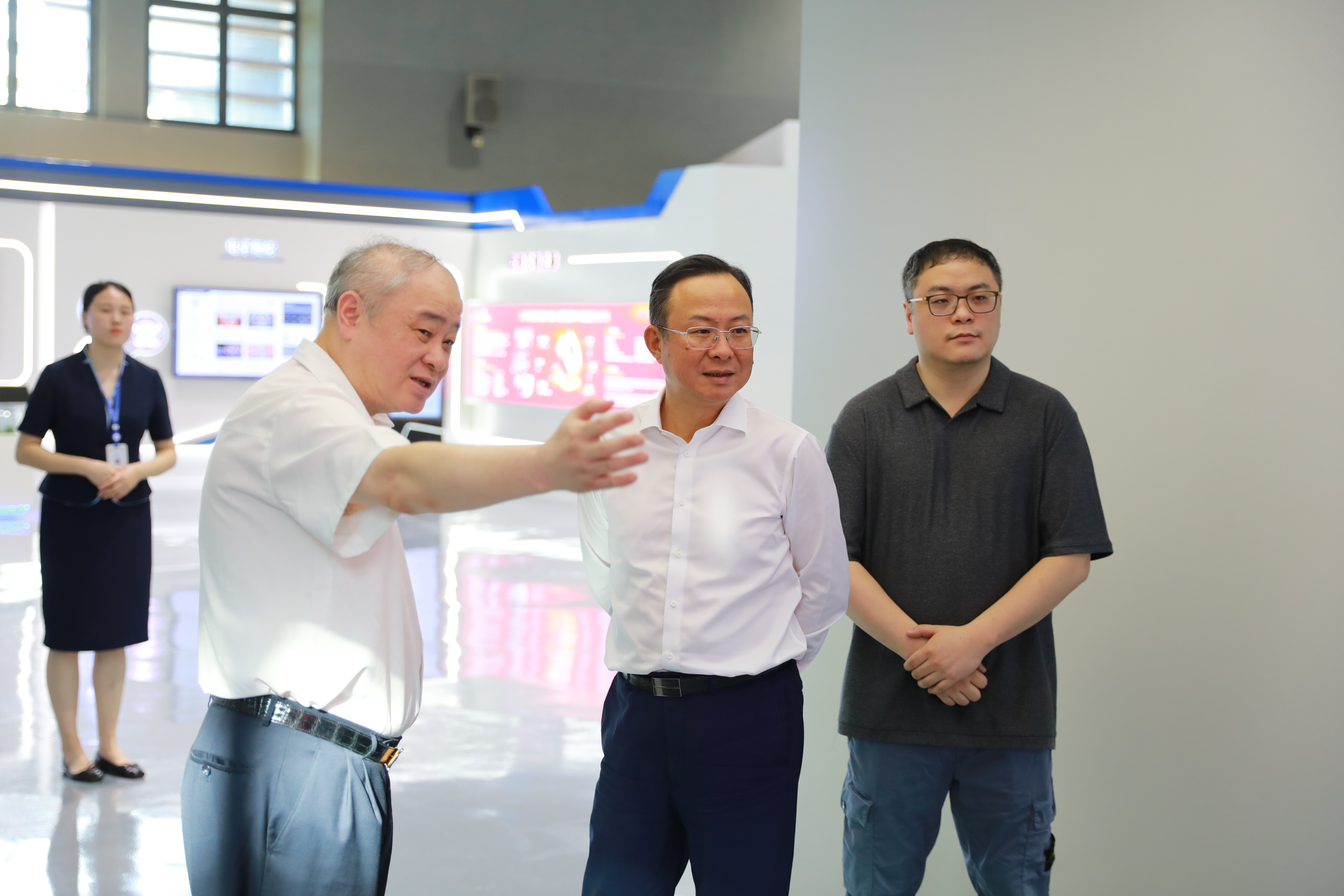 朱健董事长一行走进新大陆创新成果展示厅,详细了解新大陆战略规划、产业布局和科技创新。胡钢董事长简要回顾了新大陆发展历程,介绍了各产业集群的发展情况,并着重阐述了新大陆的数字商业生态和全球产业布局。朱健对新大陆的综合实力给予高度评价,并表示,国泰海通与新大陆有着长久而密切的合作历史,此次来访,希望能与新大陆进一步增进了解互信、凝聚合作共识。