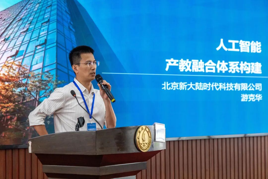北京新大陆时代科技有限公司技术中心总监游克华,紧扣产业真实需求,系统构建人工智能产教融合全链条体系。他提出,以产业需求倒推教育供给为核心,打造课程体系精准对接、实训平台实景赋能、育人机制闭环落地的一体化方案,全面贴合企业岗位能力要求与行业技术标准。他强调,新大陆时代科技将始终紧跟教育部工作部署,坚守“产教融合、科教融汇”初心,持续深化“AI+教育”战略布局,以技术赋能教育、以产业反哺教学,为教育强国建设、区域产业高质量发展注入源源不断的智慧与力量。